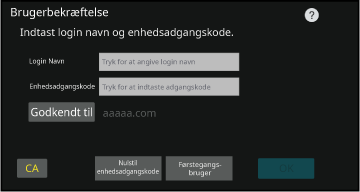 Brugergodkendelse på maskinen ved brug af hurtig brugergodkendelse