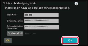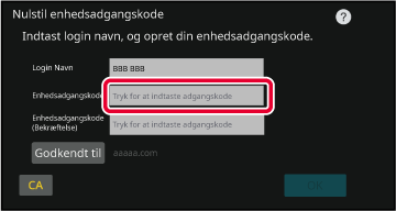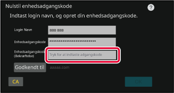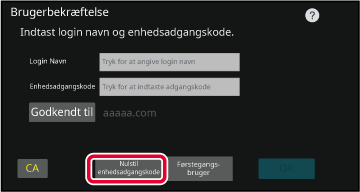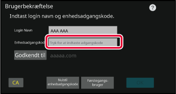Enhedsadgangskoden er adgangskoden til godkendelse på maskinen.