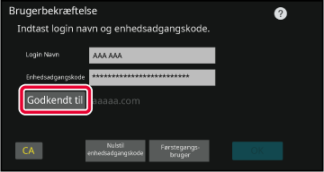 Tryk på tasten [Godkend til], og indstil godkendelsesdestinationen.