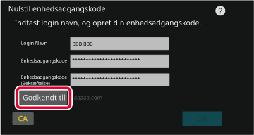 Tryk på tasten [Godkend til] for at indstille godkendelsesdestinationen.
