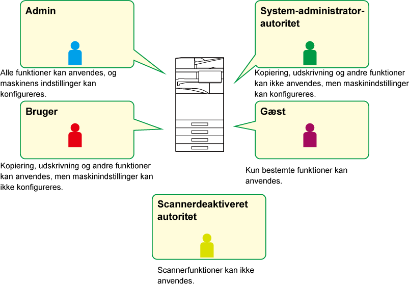 sider, som kan scannes eller faxes. Brugerne kan også forbydes at