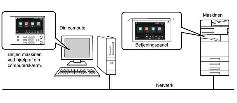 Du kan betjene maskinen fra den samme type panel som maskinens