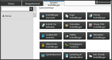 Hvis du trykker på fanen [Systemindstillinger], vises emnetasterne