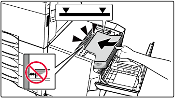 Legen Sie das Papier in das Fach ein, bis es stoppt. Legen Sie das Papier mit der Druckseite nach unten ein. Der Stapel darf nicht über die Markierungslinie hinausragen (maximal 3000 Blätter).