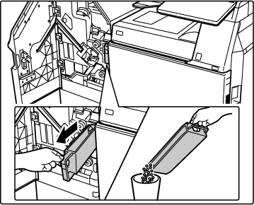 Ziehen Sie den Behälter für den Locherabfall heraus, und entsorgen Sie den Locherabfall.