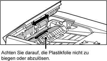 Öffnen Sie den automatischen Dokumenteneinzug und entfernen Sie den Glasreiniger.