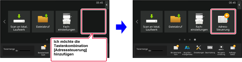 Sie können Schnellzugriffstasten über das Touch-Panel oder