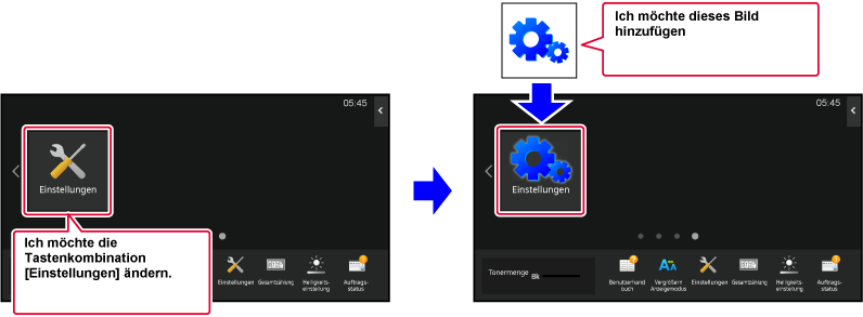 Die Einstellungen werden im Gerät gespeichert und angewandt.Wenn Sie das Bild einer Schnellzugriffstaste