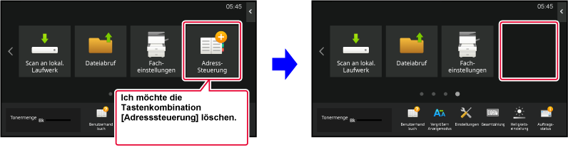 Berühren Sie die Schnellzugriffstaste, die Sie löschen möchten und berühren Sie [Löschen-Taste].