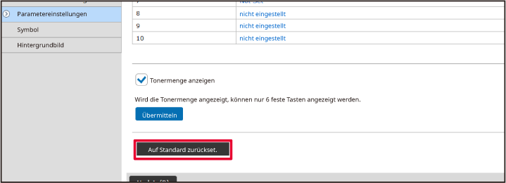 Klicken Sie auf [Einstellungen der Parameter] und dann auf die Schaltfläche [Zurück auf Standard].