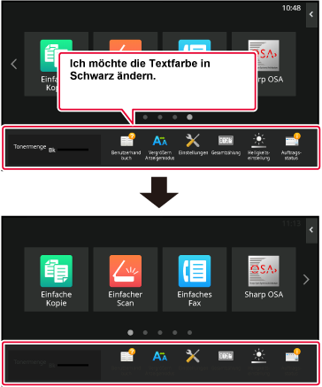 Öffnen Sie auf der Startseite das Aktionsfeld und berühren Sie [Textfarbe auf Startseite ändern].
