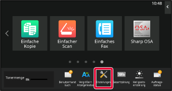 Berühren Sie auf der Startseite die Taste [Einstellungen].
