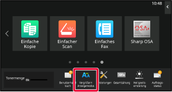 Berühren Sie auf der Startseite die Taste [Vergrößern Anzeigemodus].