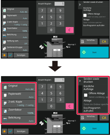 Die Auswahl dieser Funktion erfolgt über das Touch-Panel.