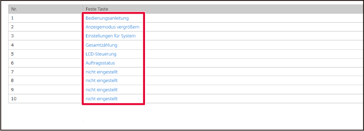 Klicken Sie auf [Einstellungen der Parameter], und klicken Sie dann unter "Feste Taste" auf das gewünschte Element.