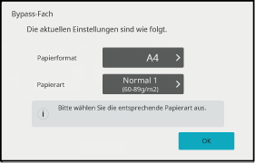 Berühren Sie die Taste [Papierart], berühren Sie die festgelegte Papierart-Taste, und berühren Sie dann die Taste [OK].