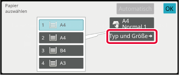 Beim Ändern der Papierart durch Berühren der Taste [Papierwahl], berühren Sie die Registerkarte [Art] und wählen Sie die Papierart.