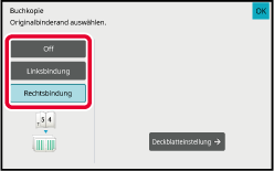 Wenn ein Deckblatt eingelegt wird, berühren Sie die Taste [Deckblatteinstellung] und anschließend die Taste [On].