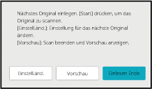 Wiederholen Sie diesen Schritt, bis alle Originale gescannt wurden.Wiederholen Sie den Vorgang, bis alle Seiten gescannt wurden, und überprüfen Sie das Vorschaubild im Vorschau-Bildschirm.