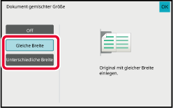 Berühren Sie abhängig vom Original die Tasten [Gleiche Breite] oder [Unterschiedliche Breite].