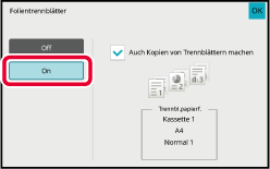 Wenn auf den Trennblättern kopiert werden soll, berühren Sie das Kontrollkästchen [Auch Kopien von Trennblättern machen], um dieses auf