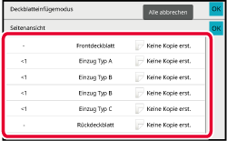 Wenn nur ein Deckblatt eingefügt wird, berühren Sie die Taste [Keine Kopie erst.].