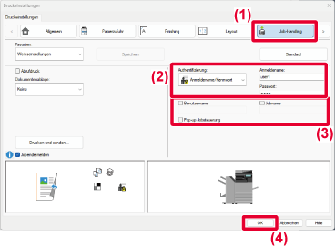 DRUCKEN BEI AKTIVIERTER BENUTZERAUTHENTIFIZIERUNGSFUNKTION