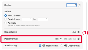 unter „Papiergröße" im Seiteneinstellungsfenster zum Drucken verwendet.