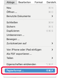 Wählen Sie die Option [Papierformat] aus dem Menü [Ablage]