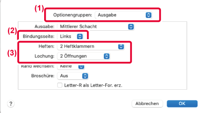 Die Lochpositionen werden durch die Auswahl der Bindungsseiten festgelegt.