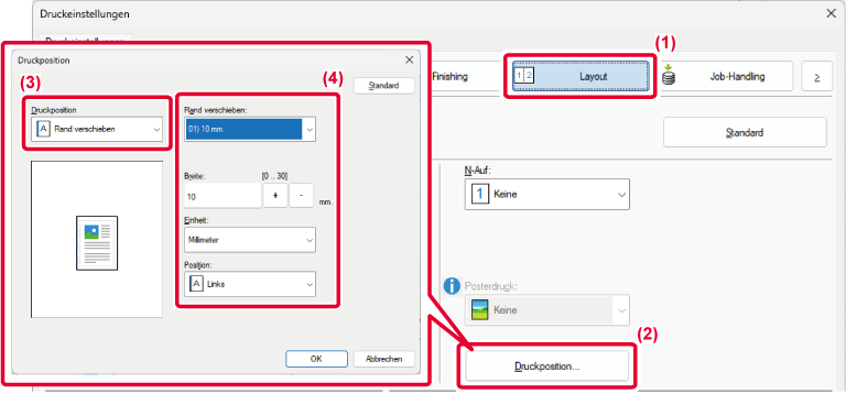 - Klicken Sie auf die Schaltfläche [Druckposition].