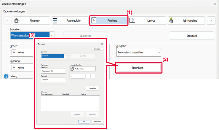 versehen ist, wird auf dem Trennblatt