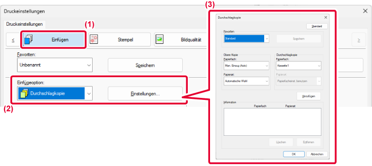Wenn zum Beispiel das Drucken einer Durchschlagkopie gewählt
