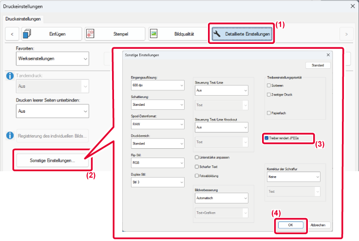 Wählen Sie im Druckertreibereigenschaftenfenster auf der Registerkarte