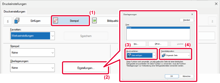 sind zwei Methoden verfügbar: "Registerkarte Verschiebung" und "Registerseiten-Papierdruck".