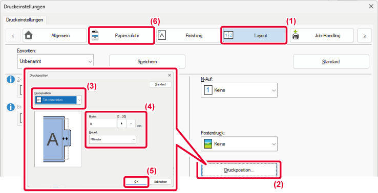 unter [Druckposition] fest. Der Text wird auf den Registern gedruckt.