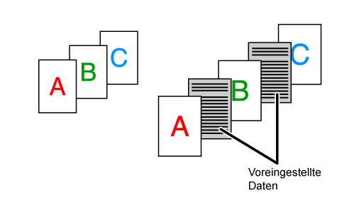 in jede Seite ein voreingestelltes Datenelement eingefügt.