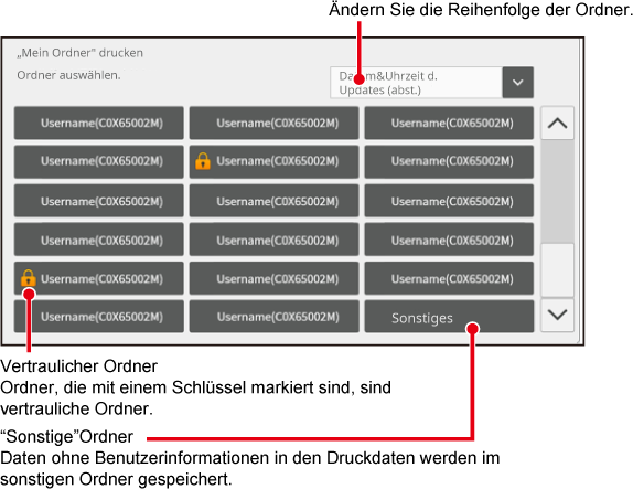 Benutzer können die Druckdaten aus ihren eigenen Ordnern auf