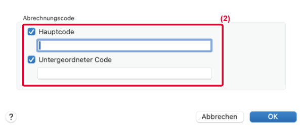 Wenn der Druckvorgang beginnt, wird der Bildschirm "Abrechnungscodeeinstellung"