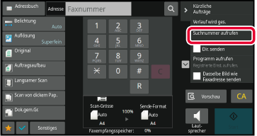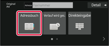 Berühren Sie die Taste [Direkteingabe] oder [Faxnummer], um die Ziel-Faxnummer einzugeben.