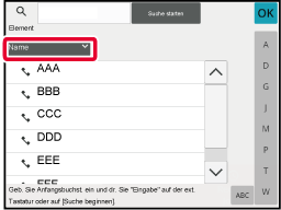 "XX" enden.Geben Sie ein Suchwort ein und berühren Sie die Taste [Suche starten].