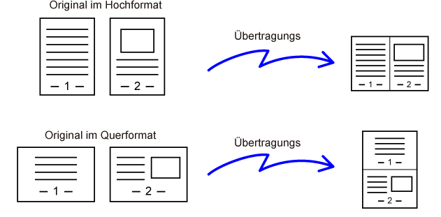 auf gleiche Größe verkleinert und als Einzelseite gesendet werden.
