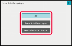 Berühren Sie eine der Tasten [Leere Seite überspringen] oder [Leer und schattiert überspr.].
