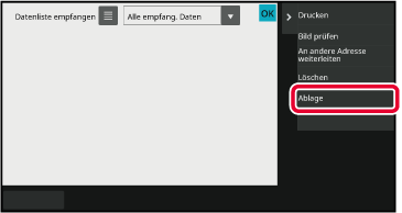 Berühren Sie die Taste für die empfangenen Daten, die Sie speichern möchten, und dann im Aktionsfeld die Taste [Ablage].