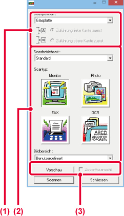 normales Vorschaubild. Beachten Sie, wenn im Menü "Scanquelle" SPF