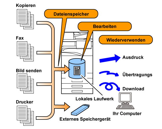 für die Funktionen [Ablage] und [Dateienspeicher] zur Verfügung.