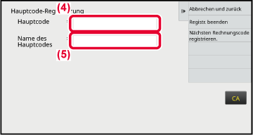 Weitere Informationen über die Änderung des Codes finden Sie in den Schritten 4 bis 7 unter " REGISTRIEREN EINES NEUEN ABRECHNUNGSCODES".Berühren Sie auf dem Aktionsfeld [Registr. beenden].