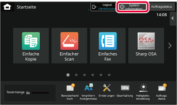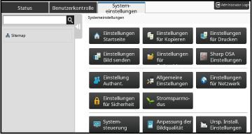 Wenn Sie die Registerkarte [Systemeinstellungen] berühren, werden auf dem Bildschirm Optionstasten angezeigt.