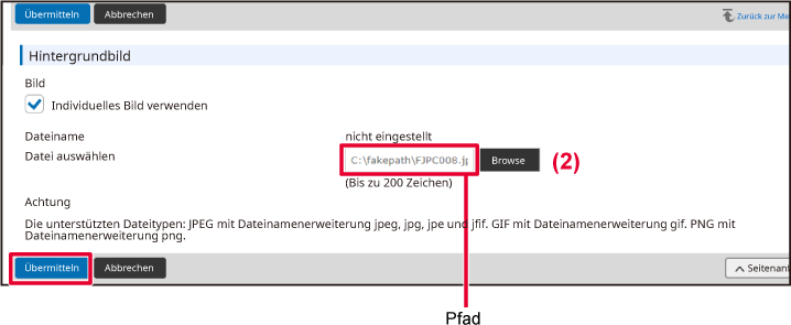 Wählen Sie "Individuelles Bild verwenden" und suchen Sie das gewünschte Bild über die Schaltfläche [Browse].