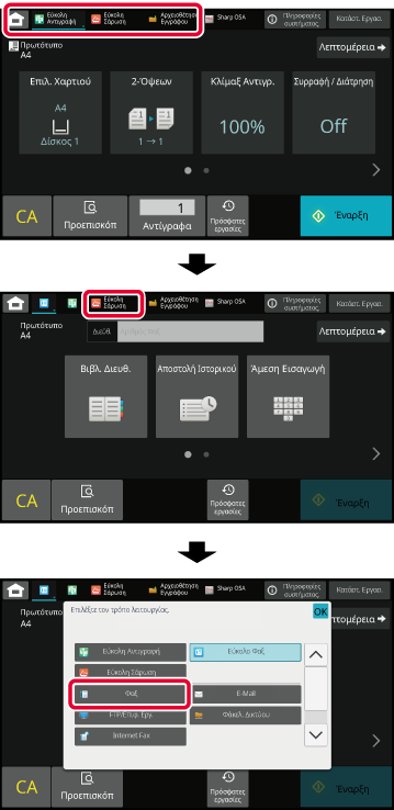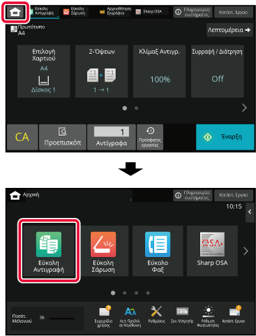 Αλλαγή λειτουργίας από την Αρχική οθόνη
